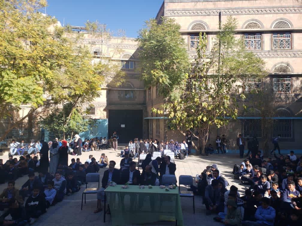اقامة مدرسة صنعاء المتقدمة بنين فعالية اذاعة مدرسية وذلك