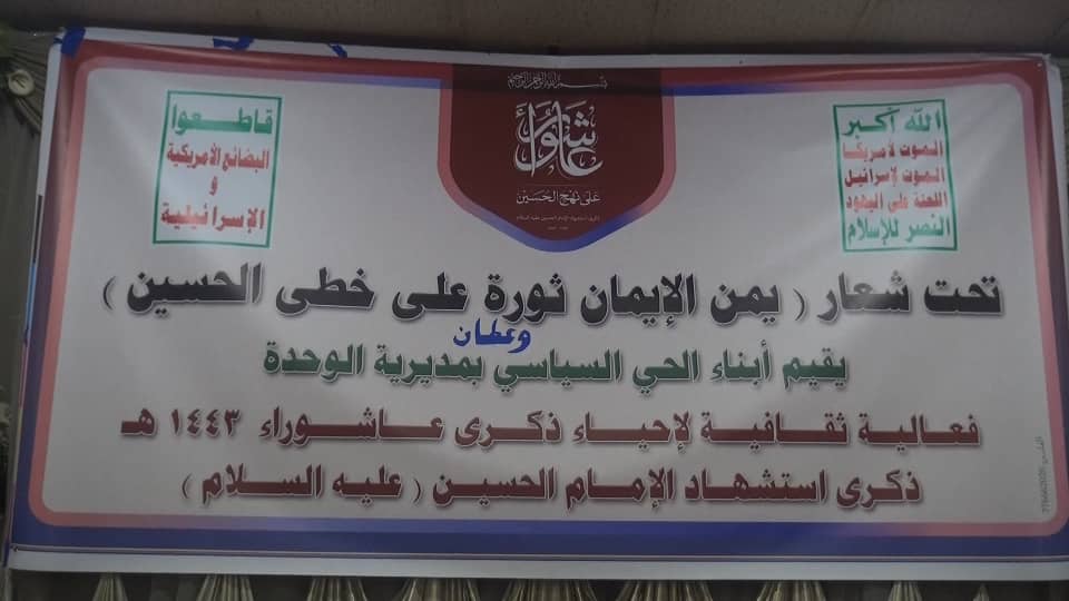 أقيمت اليوم في الحي السياسي وعطان بمديرية الوحدة فعالية ثقافية وخطابية إحياء لذكرى عاشوراء وفاجعة كربلاء .