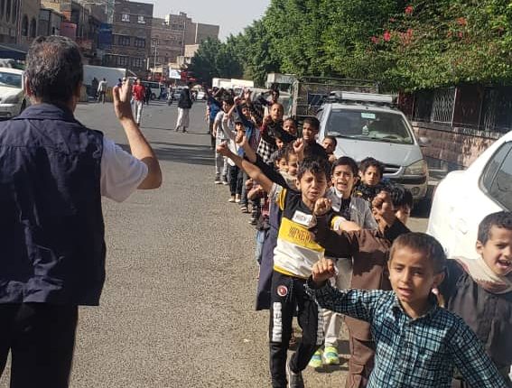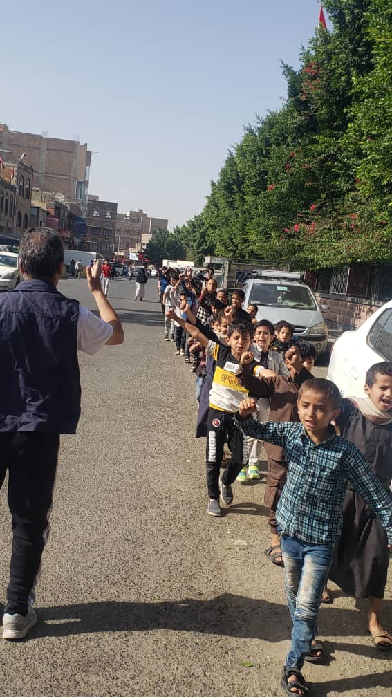 خرجو من المركز في مسير طلابي في شوارع الحي وهم يرددو الزوامل الجهادية والأناشيد الوطنية