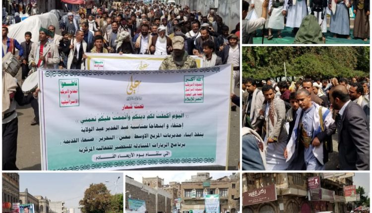 نظم المكتب الإشرافي لأنصار الله بحي مذبح الشمالي وشملان، عصر اليوم، أمسية ثقافية وخطابية إحتفالا بذكرى يوم الولاية وذلك بمربع الستين الشمالي.
