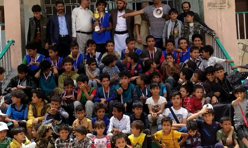 الفريق الفائز ببطولة الدوري الداخلي لكرة القدم بالمركز الصيفي  وسلموا الكأس والميداليات للاعبي الفريق الفائز بالبطولة فريق الشهيد طه المداني
