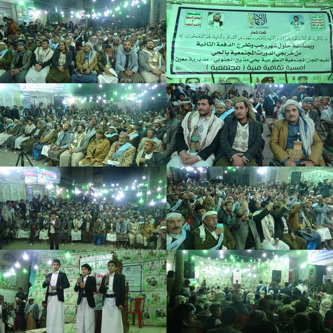 نظمت اللجان المجتمعية بأحياء مذبح الجنوبي والقبة بمديرية معين، أمسيات ثقافية إحياءاً لذكرى جمعة رجب ودخول اليمنيين في الإسلام.