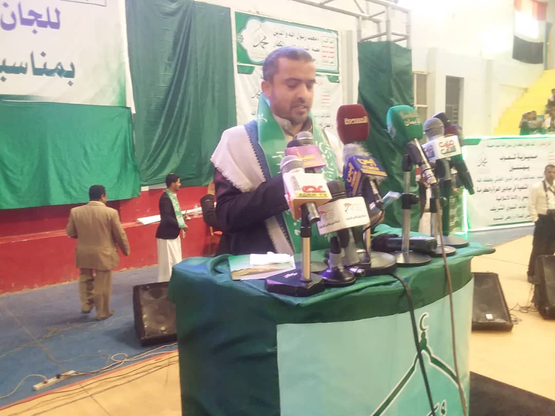 نظمت مديرية شعوب بأمانة العاصمة اليوم، فعالية احتفالية بذكرى المولد النبوي الشريف. وفي الفعالية اعتبر عضو مجلس الشورى خالد المداني، إحياء ذكری المولد النبوي، من أعظم المناسبات للاحتفال بقدوم رسول البشرية الذي أخراج الناس من ظلمات الجاهلية وعبادة الأوثان إلى عبادة الله وحده. وأكد المداني ضرورة اغتنام هذه المناسبة في تعزيز الوعي بمخاطر العدوان ومخططاته وتعزيز الاصطفاف والوقوف في خندق الدفاع عن الوطن والتحشيد لرفد الجبهات. ودعا المداني الجميع إلى المشاركة في الفعالية المركزية التي ستقام في الـ12 من ربيع الأول بميدان السبعين. وفي الفعالية التي حضرها رئيس لجنة الشؤون الاجتماعية بمحلي أمانة العاصمة حمود النقيب والوكيلان المساعدين بأمانة العاصمة هاشم الوزير ومحمد سريع والوكيل المساعد لوزارة التربية خالد إبراهيم ومدير مكتب الأوقاف بالأمانة عبد الله عامر, أشار مدير مديرية شعوب مهدي عرهب إلى أهمية إحياء هذه المناسبة بما يعزز من التمسك بمبادئ ونهج الرسول الكريم والدعوة لرفد الجبهات بالمال والرجال. ونوه بالمكانة العظيمة التي يحتلها رسول البشرية ومعلمها الأول محمد صلوات الله عليه وآله وسلم في نفوس اليمنيين .. مشيداً بصمود أبناء المديرية وتفاعلهم من خلال اقامة العديد من الفعاليات والندوات والأمسيات بالمولد النبوي الشريف. تخلل الفعالية فقرة إنشادية أداء مدارس الأمجاد الأهلية وفقرة استعراضية رياضية. حضر الفعالية نائب رئيس اللجنة الاشرافية للمولد النبوي عبد الله الكول وعضوا محلي الأمانة شرف الهادي وعلي قاسم الرحبي والشيخ علي الراعي وعدد من أعضاء محلي المديرية ومدراء المكاتب التنفيذية والشخصيات الاجتماعية.