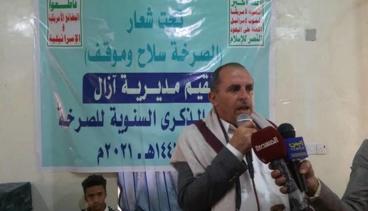 أقيمت اليوم الثلاثاء ، بمديرية آزال في أمانة العاصمة، فعالية خطابية وثقافية بالذكرى السنوية للصرخة في وجه المستكبرين، تحت شعار “الصرخة شعار وموقف”.