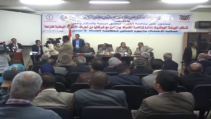 نظمت الهيئة الوطنية العليا لمكافحة الفساد في مجلس النواب بالعاصمة صنعاء اليوم الأحد فعالية بمناسبة اليوم العالمي لمكافحة الفساد، للتأكيد على ضرورة تظافر الجهود للوقوف أمام الفساد ومحاسبة المفسدين في مختلف المؤسسات الحكومية.
