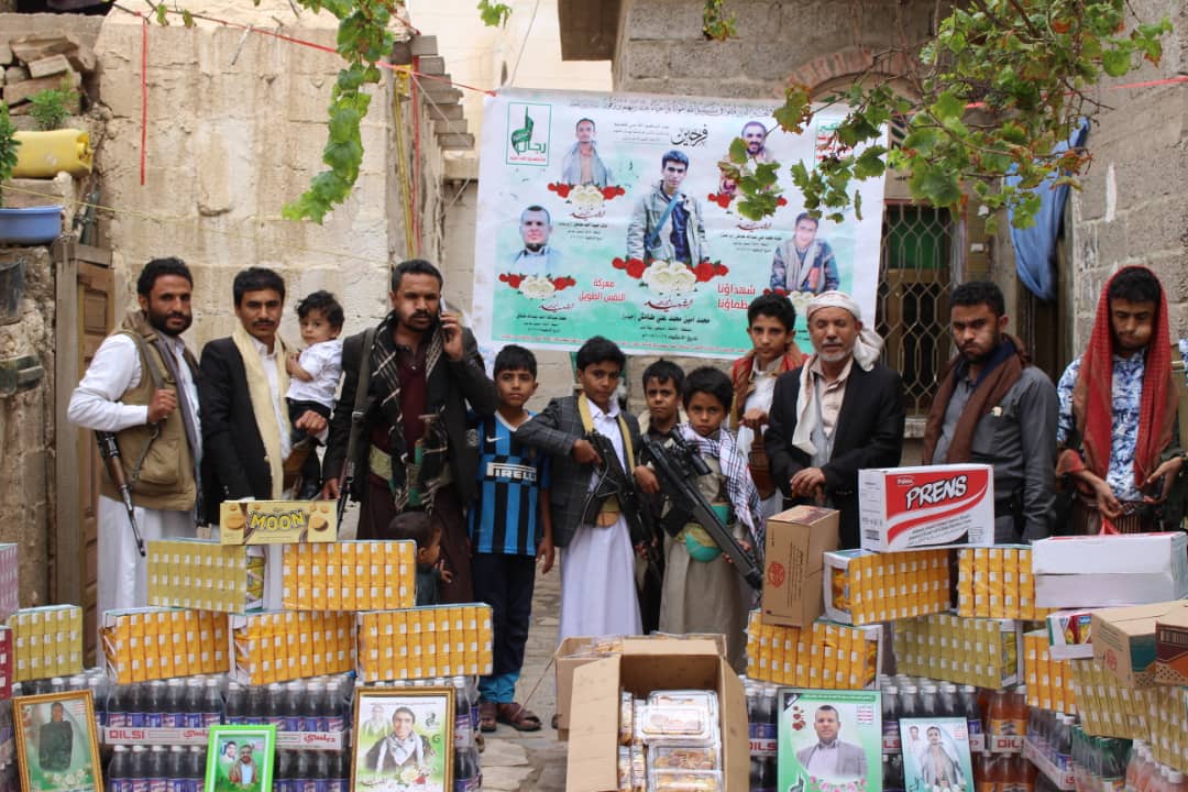 قدمت أسرة الشهيد آل طامش قافلة غذائية وعيدية بحي بيت بوس مديرية السبعين وذلك بمناسبة قرب عيد الاضحى المبارك إلى رجال الرجال في جبهات القتال