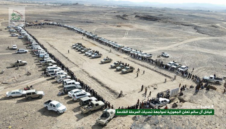 خرجت قبائل مديرية آل سالم بمحافظة صعدة، اليوم الأحد، في لقاء مسلح حاشد، مجددة العهد والولاء، ومعلنة الجهوزية الكاملة لخوض المرحلة القادمة من المواجهة ضد العدو الصهيوأمريكي وأدواته العميلة، ومؤكدة البراءة الصريحة من الخونة والعملاء.
