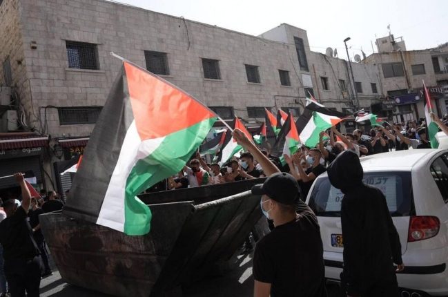 انطلقت اليوم، مسيرة فلسطينية رفعت خلالها الأعلام الفلسطينية في شارع صلاح وسط مدينة القدس المحتلة، رغم القمع والملاحقة والاعتداءات التي تعرضوا لها.