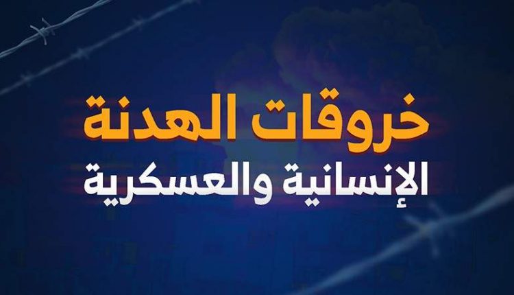 ارتكبت قوى العدوان ومرتزقتها 218 خرق للهدنة الإنسانية والعسكرية، خلال الـ 24 ساعة الماضية.