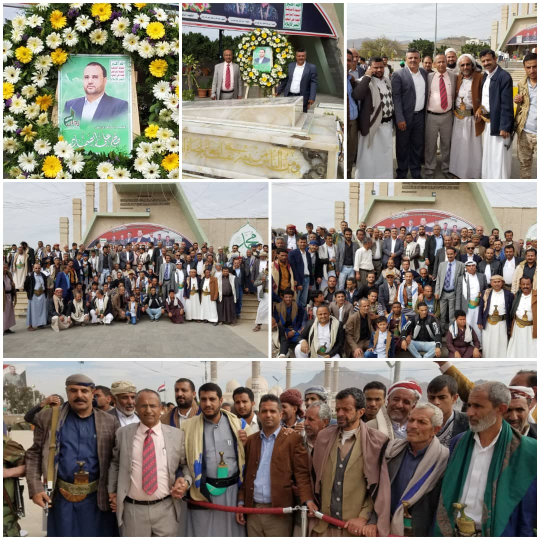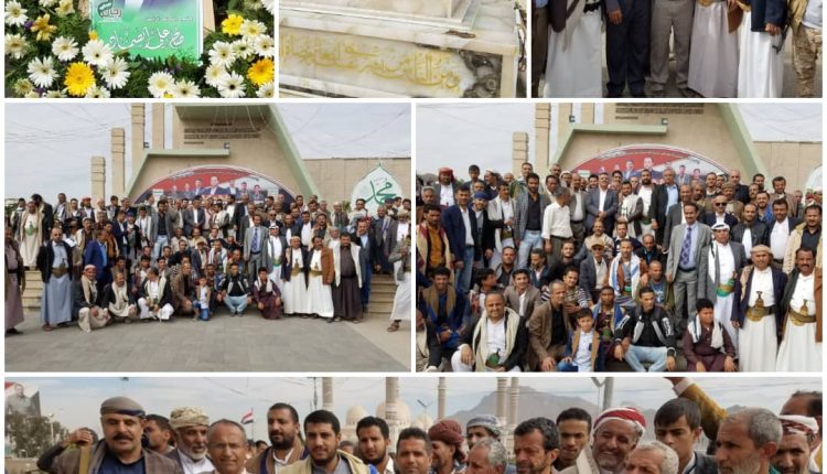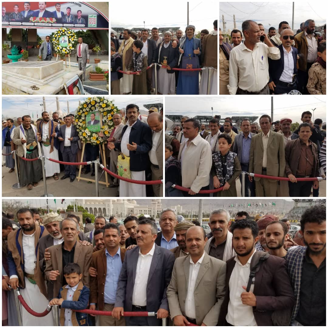 قيادة معين والمكتب الإشرافي لإنصار الله والمكاتب التنفيذية تزور قبر الشهيد الرئيس صالح الصماد
