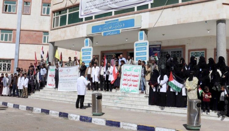 كوادر مستشفى فلسطين بالأمانة ينددون باستهداف المرافق الطبية في غزة