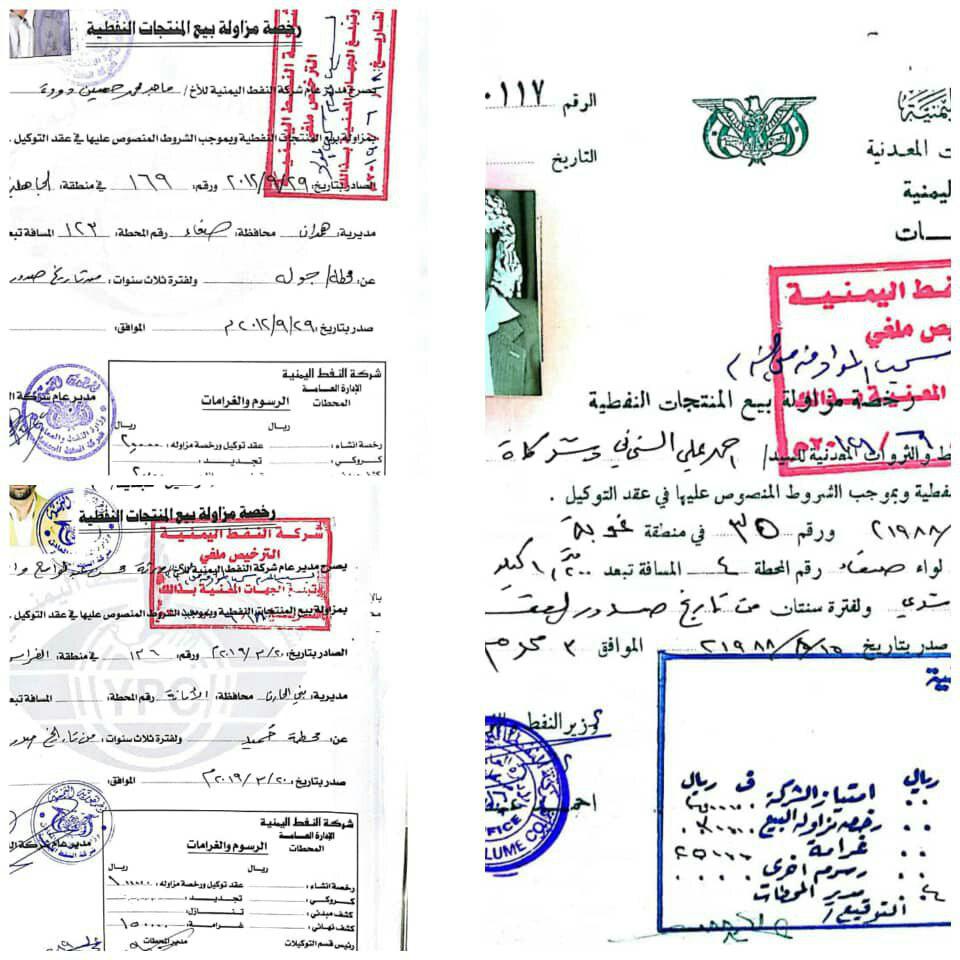 وأكد الناطق الرسمي لشركة النفط اليمنية أمين الشباطي أن اللجنة أقرت إلغاء تراخيص عدد من المحطات المخالفة التي توقفت عن سحب المواد البترولية من الشركة وتبيع مواد مجهولة المصادر والصور المرفقة لعينة من التراخيص التي تم إلغاءها.