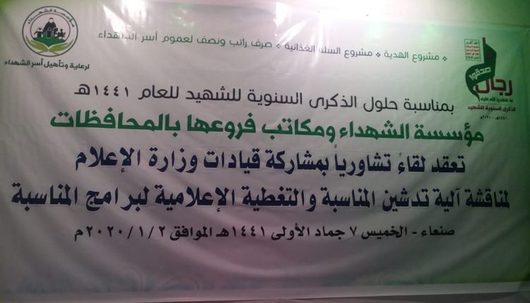 لقاء تشاوري لمؤسسة الشهداء و قيادات وزارة الإعلام لمناقشة تغطية الذكرى السنوية للشهيد 1441ه