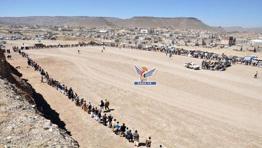 لقاء قبلي حاشد وقافلة غذائية من قبيلة سنحان دعماً للجيش واللجان الشعبية.