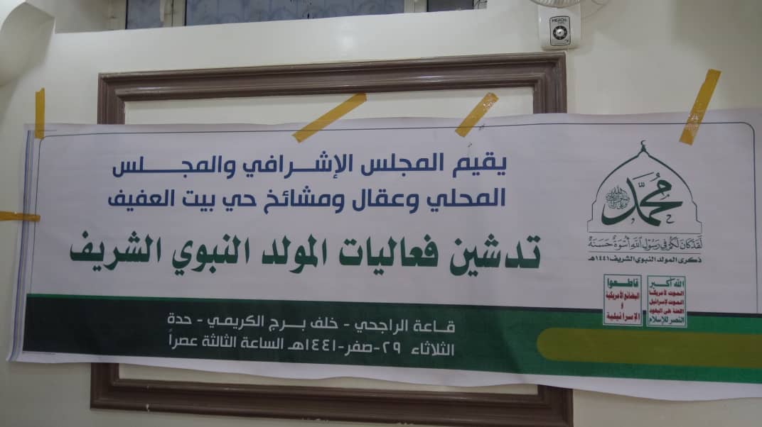 ابتهاجا بقدوم المولد النبوي الشريف عقد مساء اليوم للقاء موسعا بحي بيت العفيف بمديرية السبعين بأمانة العاصمة اليوم مهام لجان الإعداد والترتيب لإحياء ذكرى المولد النبوي الشريف لهذا العام 1441ه وذلك بحضور عضو المكتب السياسي لأنصار الله حزام الاسد وعدد من قادة الاحزاب المناهضة للعدوان ووكيل أمانة العاصمة عبدالله محرم وتم مناقشة آلية عمل اللجان في التهيئة للمشاركة في الفعالية الكبرى التي ستقام في 12 ربيع الأول بالعاصمة صنعاء. وفي اللقاء أشاد الأسد بتفاعل أبناء المديرية من خلال حرصهم على المشاركة في الفعاليات والأنشطة بهذه المناسبة الدينية العظيمة . وقد القيت عدة كلمات كلها تحث الجميع في الاهتمام بالحشد والنزول الى المجتمع لليعرف العالم كله في يوم 12 ربيع الأول رغم العدوان والحصار لايزال اليمنين يتمسكون بالقائد والقدوة محمد صلوات الله عليه وعلى آله.