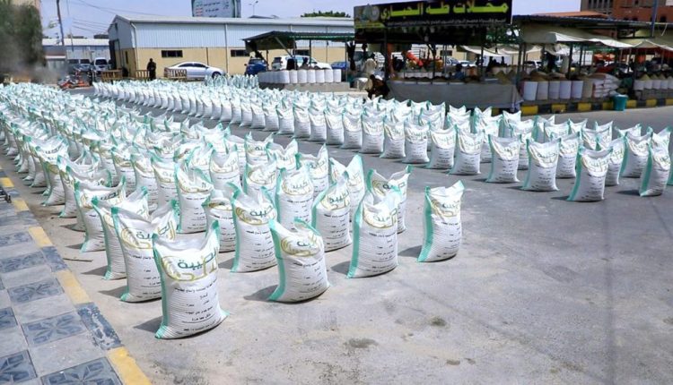 مؤسسة الحبوب توزع 1100 كيس قمح لأسر الشهداء والجرحى والفقراء