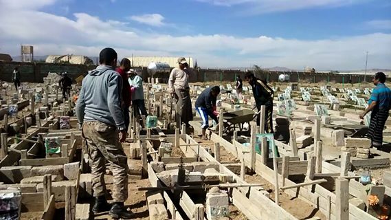 مبادرة مجتمعية بمديرية بني الحارث بحي الروضة لصب وتزيين روضة الشهداء.
