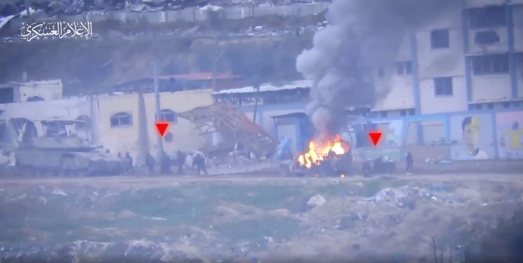 في ذات السياق أعلنت القسام تدمير شاحنة عسكرية محملة بالجنود الصهاينة شرق مدينة خانيونس وتدمير دبابة ميركفاه صهيونية شرق بيت لاهيا ، وتدمير جيب عسكري صهيوني بصاروخ مضاد للدروع في محيط منطقة أبراج الندى شمال قطاع غزة .. بالإضافة لاستهداف دبابة “ميركفاه” صهيونية بقذيفة “الياسين 105” في خانيونس.