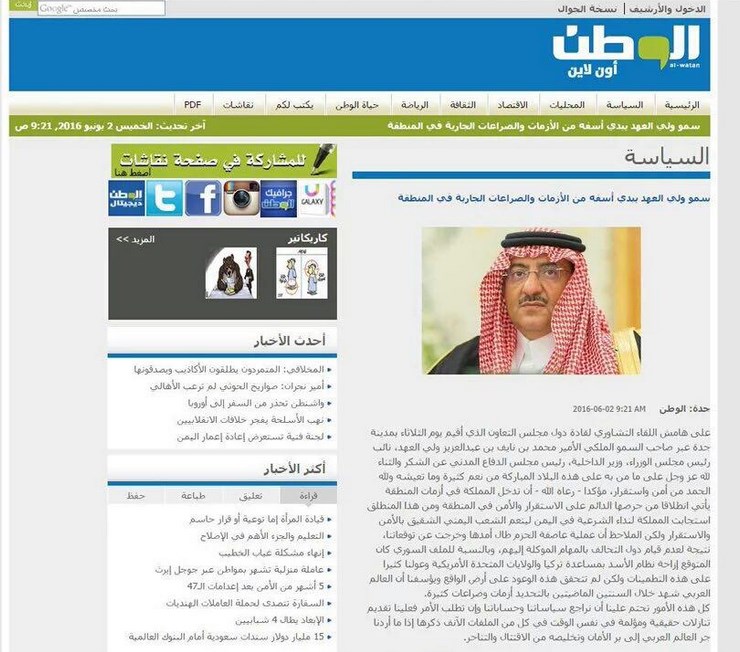 وكان موقع صحيفة الوطن نشر تصريحات لولي العهد، وزير الداخلية، محمد بن نايف  اعترف فيها بفشل العدوان على اليمن واستعداد القيادة السعودية لتقديم تنازلات من أجل “فرض الاستقرار في المنطقة” بحسب التصريحات.