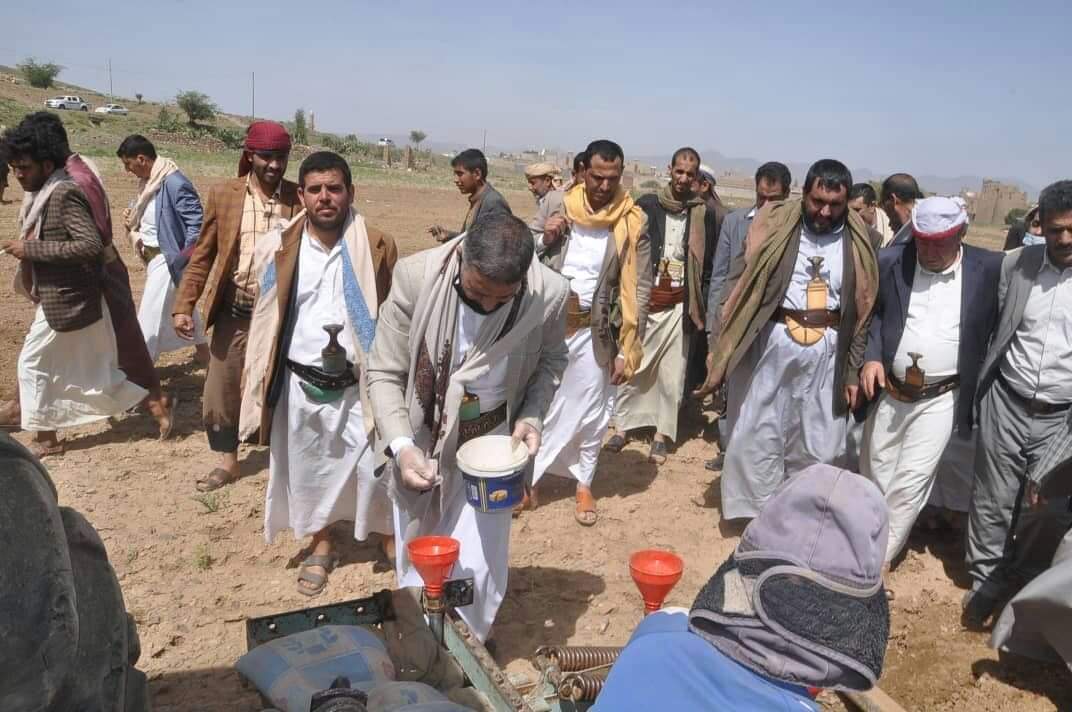 محافظ صنعاء ومدير مؤسسة الحبوب يدشنان موسم زراعة الحبوب بمديريتي سنحان وبلاد الروس