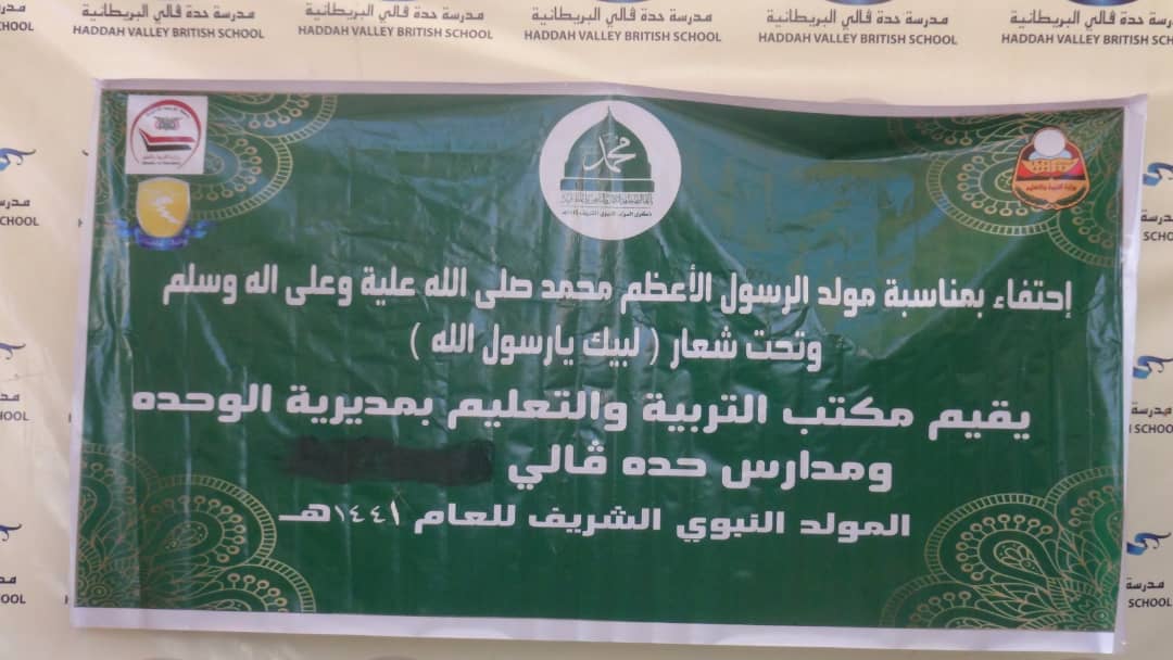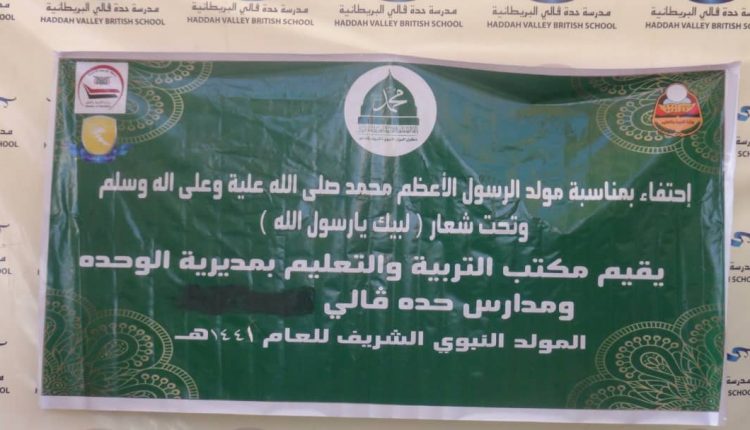 مدارس حده فالي الاهلية بمديرية الوحدة(صور) تقيم فعاليه تحت شعار (لبيك يارسول الله)