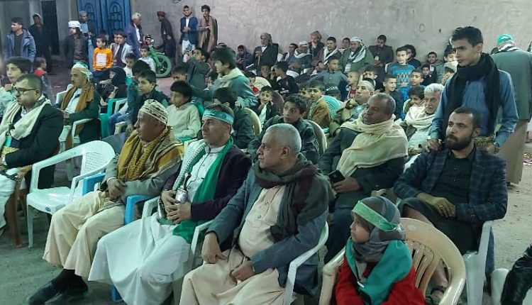 وأكد أن اليمنيين اليوم رغم تبادل السفراء والتطبيع مع اسرائيل نجتمع في كل حي وحارة ومدينة محبة وطاعة لرسول الله ولا يمكن ان نعطي الدنية في دينتا وسنمضي على نهج رسول الله .
