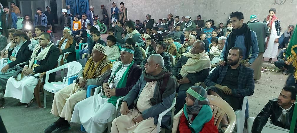 ناقلا تحيات عضو المجلس السياسي الأعلى محمد علي الحوثي لأبناء مديرية الثورة والحاضرين الفعالية الخاصة بذكرى المولد النبوي الشريف .