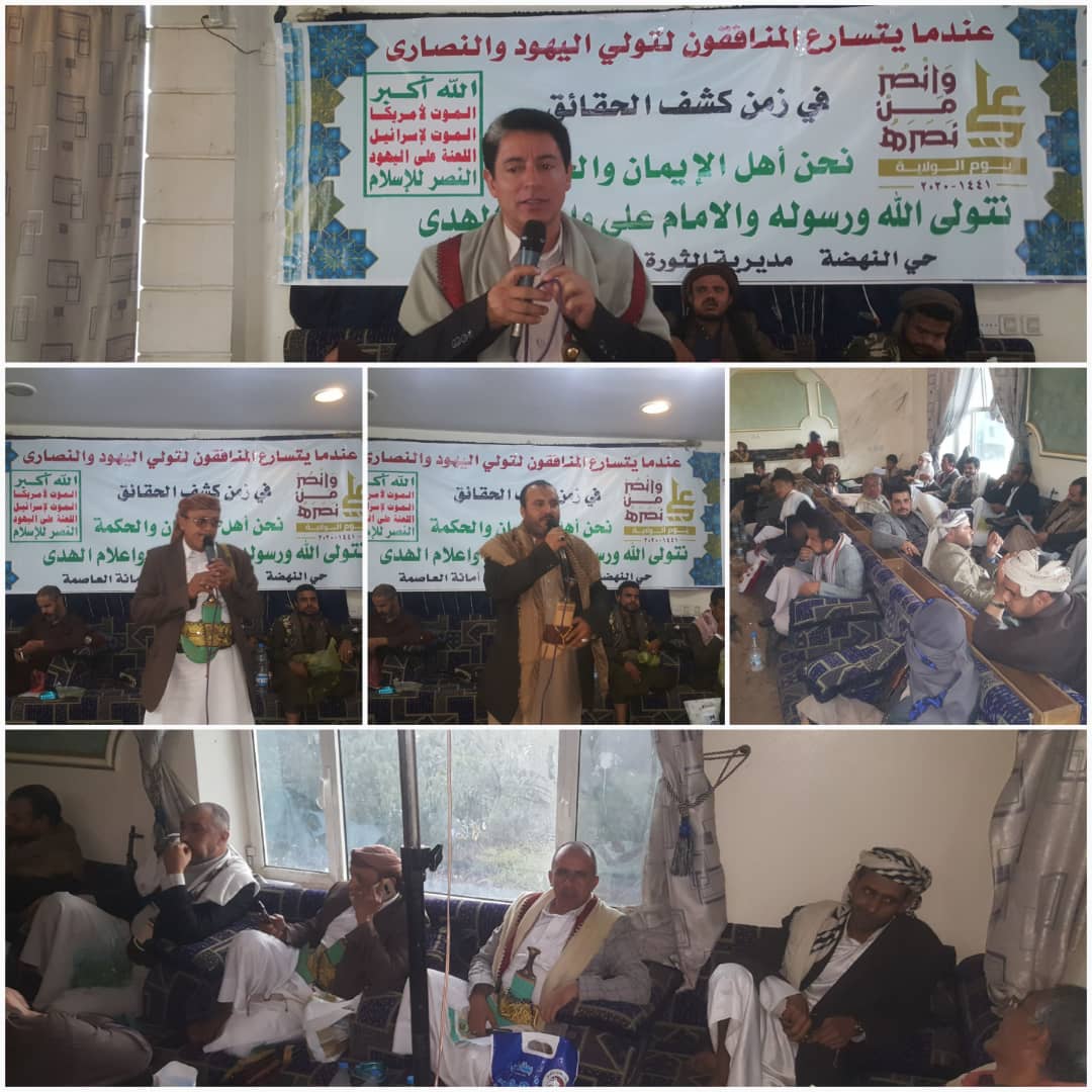وفي تصريح أشار مدير عام مديرية الثورة محمد حمود الدرواني إلى ذكرى يوم الولاية والتي تعد من المناسبات الدينية العظيمة التي يحيي ذكراها الشعب اليمني في ١٨ ذي الحجة من كل عام والتجهيز للفعالية ومشاركة الجميع في إحياء هذه الذكرى الغالية .