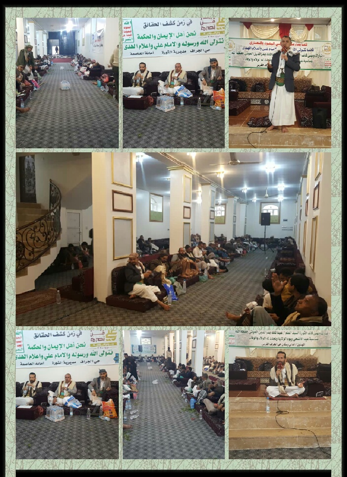 وأكد على أهمية الخروج الحاشد في هذه الفعالية يوم الثامن عشر من ذي الحجة لتمثل رسالة من الشعب اليمني لطواغيت الأمة وأعدائهما من أمريكا وإسرائيل بأن اليمنيين يوالون الله ورسوله والامام علي ولن يوالوا اليهود والنصاري .