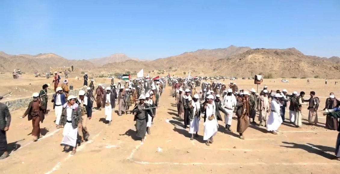 وأكد مشايخ ووجهاء المديرية، أن هذا العرض الرمزي الشعبي والشبابي ينطلق من المواقف العملية للشعب اليمني والقيادة والقوات المسلحة تجاه نصرة المقاومة الفلسطينية، مقابل تنصل حكام الدول العربية عن القضية الفلسطينية ومواقف التطبيع.