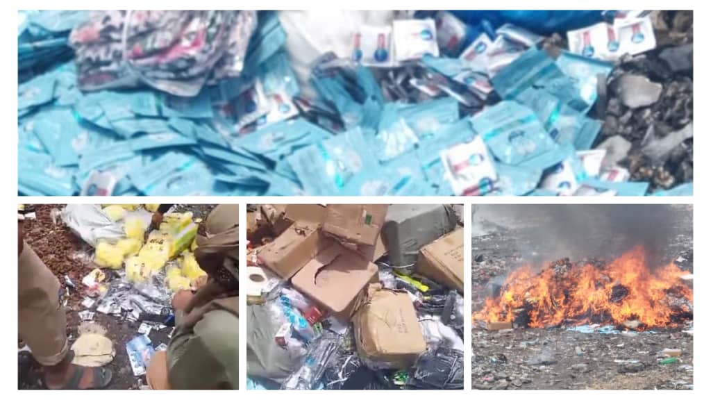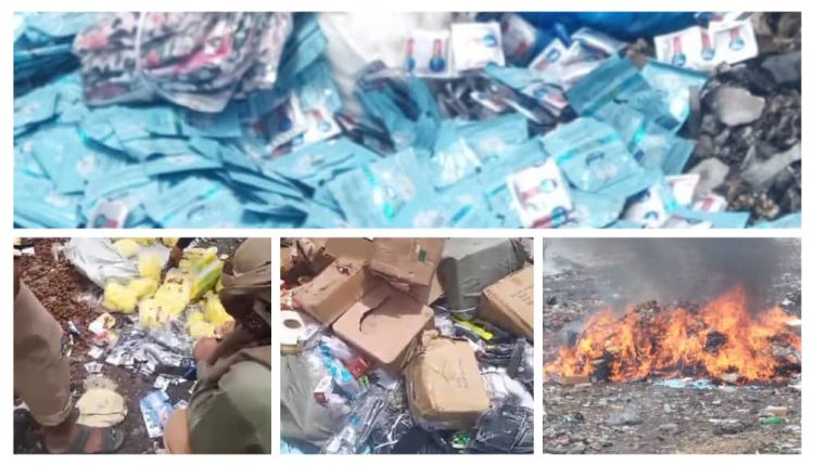 اتلف مركز عفار الجمركي مايقارب 7 طن من السلع المضبوطة المتنوعة اشتملت على ( مواد تنظيف غير مطابقة للمواصفات ومنتهية – شمة الحوت المحظورة – منشطات جنسية – ادوية غير مطابقة- ملابس عليها شعارات للمثليبن)