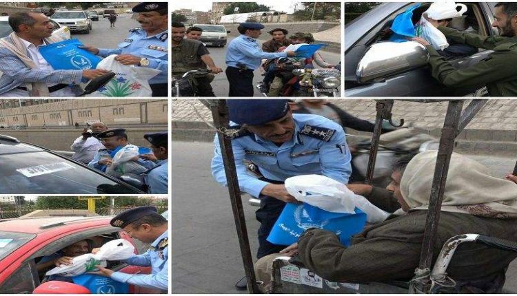 دشنت الإدارة العامة للمرور، اليوم الخميس، حملة الإحسان والتي يقوم خلالها رجال شرطة المرور بتوزيع وجبة غذائية لسائقي السيارات في عدد من الشوارع، والجولات الرئيسية في العاصمة صنعاء، بالإضافة الى توزيع منشورات تتضمن إرشادات وتعليمات مرورية.