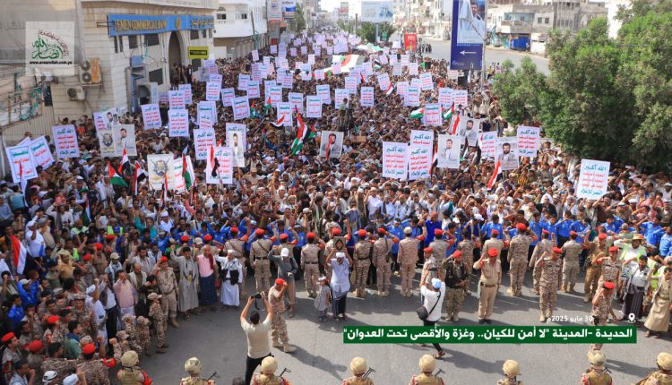 مسيرات جماهيرية كبرى بالحديدة: الشعب اليمني ماضٍ بثبات في موقفه الداعم والمساند لغزة