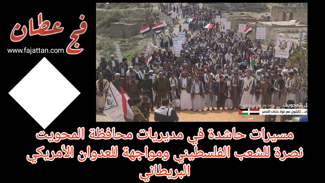 مسيرات حاشدة في مديريات محافظة المحويت نصرة للشعب الفلسطيني ومواجهة للعدوان الأمريكي البريطاني