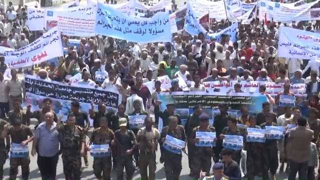 وندد المشاركون في المسيرة بالجريمة التي ارتكبها طيران العدوان الأربعاء الماضي بحق المدنيين في منطقة سوق الهنود بالمحافظة والتي راح ضحيتها أكثر من 150 شهيد وجريح.