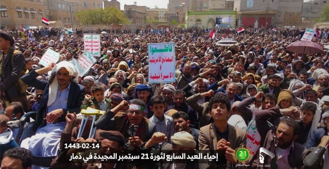 مسيرة جماهيرية حاشدة في ذمار تؤكد أن ثورة 21 سبتمبر عبرت عن إرادة الشعب اليمني