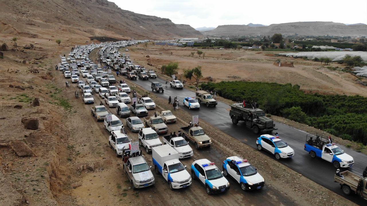 مسيرة السيارات الكبيرة قطعت بشكل منتظم عدة كيلومترات حاملة للشعارات واللوافت وأعلام الجمهورية اليمنية والفلسطينية ، في حين ابدى المشاركون فيها تحمسهم الكبير مؤكدين أن احياء هذا اليوم يعتبر من الجهاد في سبيل الله .