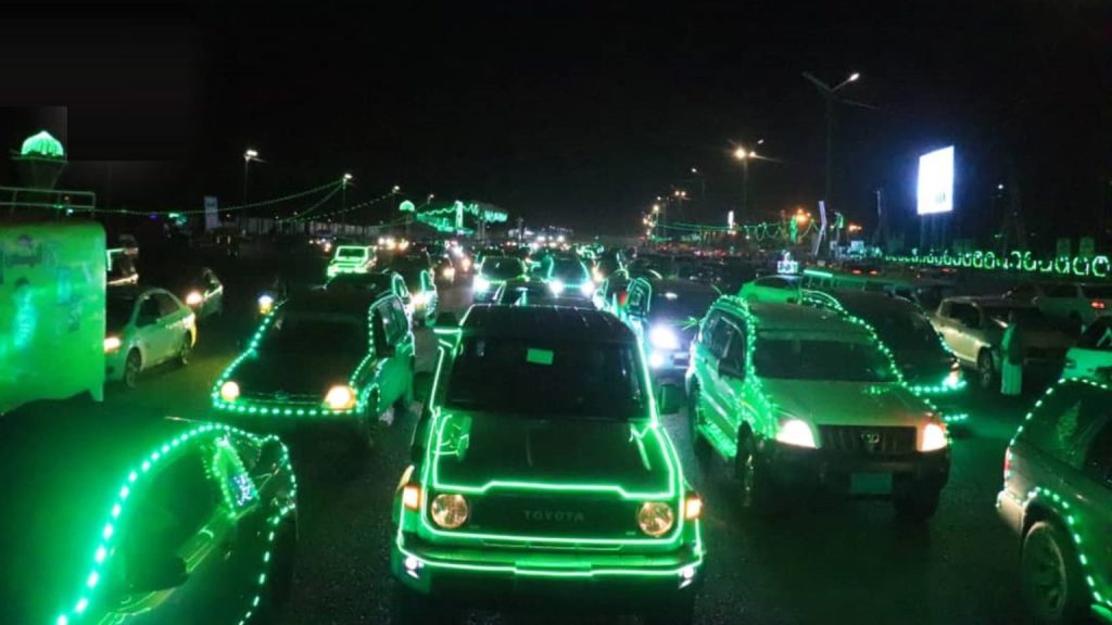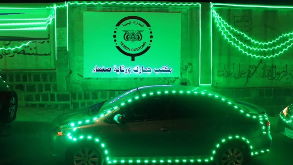 نظم مكتب جمارك ورقابة صنعاء مسيرة ضوئية بعشرات السيارات احتفالاً بذكرى مولد النبي محمد عليه وعلى آله أفضل الصلاة وأتم التسليم ..