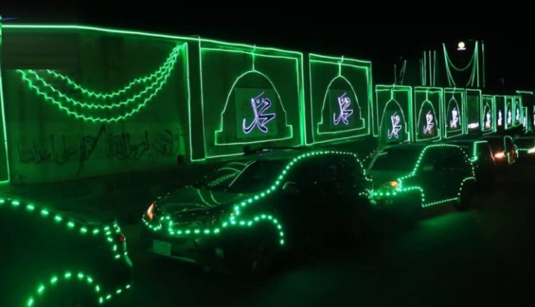 نظم مكتب جمارك ورقابة صنعاء مسيرة ضوئية بعشرات السيارات احتفالاً بذكرى مولد النبي محمد عليه وعلى آله أفضل الصلاة وأتم التسليم ..