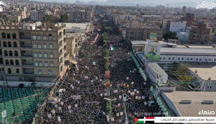 مسيرة كبرى في العاصمة صنعاء تحت شعار “مع فلسطين جاهزون لكل الخيارات”