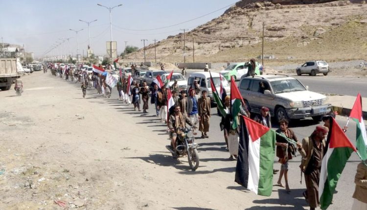 ورفع المشاركون العلَمين اليمني والفلسطيني.. مرددين الشعارات المؤكدة على الجهوزية العالية لخوض معركة “الفتح الموعود والجهاد المقدس” لردع قوى العدوان والإجرام العالمي (أمريكا وإسرائيل والبريطاني).
