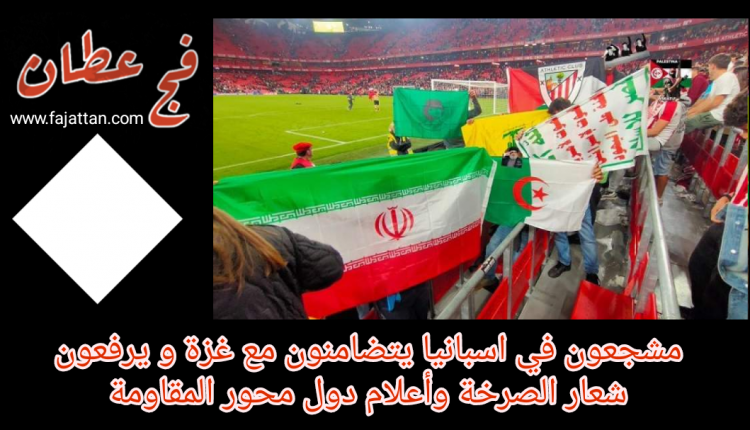 مشجعون في اسبانيا يتضامنون مع غزة و يرفعون شعار الصرخة وأعلام دول محور المقاومة