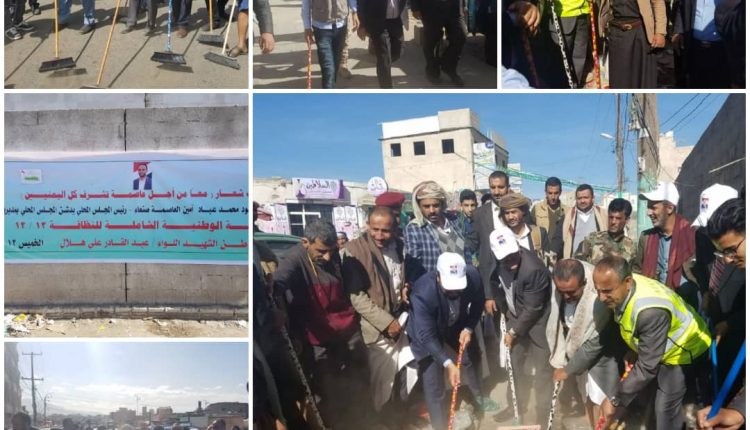 تجسيداً للشعار الذي أطلقه هلال اليمن الشهيد اللواء عبدالقادر علي هلال أمين العاصمة السابق رحمة الله عليه وعلى كل الشهداء (( من أجل عاصمة تشرف كل اليمنيين)) وبمشاركة رسمية وشعبيه يتقدمهم الاخ حسن عبدالقادر علي هلال نجل الشهيد والأستاذ علي اللاحجي وكيل أمانة العاصمة والمهندس جمال جحيش مدير عام مشروع النظافة دشنت قيادة المديرية والمجلس المحلي والمكاتب التنفيذية بقيادة الأستاذ محمد محمد ناجي مدير عام المديرية رئيس المجلس المحلي والأستاذ سامي شرف الدين مدير عام التشريعات القانونية بأمانة العاصمة مشرف عام المديرية والشيخ يحيى إسماعيل الشاحذي الأمين العام للمجلس المحلي والأستاذ عبدالحميد الحرازي مساعد مدير عام المديرية والشيخ نبيل عبدالله المنعي رئيس لجنة الخدمات في التاسعة من صباح يومنا هذا الخميس الموافق 2019 /12/12 حملة للنظافة بجميع حارات وأحياء وشوارع المديرية والتي انطلقت من شارع الستين الشمالي من أمام شركة سهيل لتعلن بعدها بدأ تنفيذ الحملة على مستوى المديرية .    وخلال تنفيذ حملة النظافة التي شارك فيها الأستاذ عمار أحمد منصر مدير مكتب وكيل الأمانة والأخ حسن عبدالقادر هلال والأخ سامي حمُيد نائب مشرف عام المديرية مشرف حي شملان والشيخ عبده شعلان عضو المجلس المحلي تم رفع أكوام القمامة والأتربه على امتداد شارع الستين الشمالي وحتى جولة عصر  .    كما تم رفع عدداً من السيارات الواقفه والخربانه والخرده  والبسطات والخزنات التي كانت تعيق تعمل على تجميع القمامة والأتربه وتكدسها وتعيق حركة السير وتشوه المنظر الجمالي للشارع العام  .    وأكد الأستاذ علي اللاحجي بأن حملة 12/12 للنظافة مثلت منذ انطلقها وحتى يومنا هذا ثورة توعوية أسهمت في ترسيخ ثقافة  مجتمعية رائعة تجعل من المجتمع شريكا ومساهما رئيسيا في المحافظة على نظافة حارته وشارعه وعاصمته .  وأوضح الأستاذ محمد محمد ناجي ب أنه وفي ظل إستمرار العدوان الصهيوأمريكي السعودي الإماراتي الغاشم على بلادنا فإن أقامت وتنفيذ والمشاركة في إنجاح مثل هذه الحملات يعكس ويعبر عن حجم الصمود والثبات الذي يقدمه أبناء هذا الشعب اليمني العظيم ، ومؤكداً على أهمية وضرورة ودور المجتمع في المحافظة على نظافة أحياء وحارات وشوارع مديرية معين بشكل خاص والأمانة وبقية المحافظات بشكل عام .   وأشاد مدير عام المديرية رئيس المجلس المحلي بالمشاركة القوية والإيجابية والمثمرة التي قدمها الجانب الإشرافي لإنصار الله بمديرية معين بمختلف مستوياته وكذلك المشايخ والعقال والخطباء والإعلاميين ومنظمات المجتمع المدني والشخصيات الإجتماعية وأبناء المديرية لإنجاح حملة 12/12 للنظافة كلا في إطار حارته وشارعه .    كما أكد الشيخ يحيى إسماعيل الشاحذي بأن  على الجميع أن يهتم ويشارك في نظافة حارته وشارعه وذلك إنطلاقاً من القيم الدينية السمحاء التي تحثنا على النظافة في كل جوانب حياتنا ، وموضحاً بأن إحياء حملة 12/12 للنظافة بهذا الشكل الرائع والمتميز يعكس روح المحبة والتقدير لصاحب الفكرة والمشروع شهيد الوطن اللواء عبدالقادر علي هلال والذي سعى من خلال هذه الحملة إلى تغيير بعض المفاهيم المغلوطة وترسيخ ثقافة مجتمعية تقوم على اساس المشاركة المجتمعية للمحافظة على نظافة عاصمتنا  .   شارك في تنفيذ الحملة …  مدير مكتب مدير عام المديرية  ومدراء ونواب ورؤساء الأقسام وموظفوا مكتب الأشغال المنطقتين الشمالية والجنوبية ومدير مكتب الشؤون الإجتماعية والعمل مدير مكتب الإعلام مدير الهيئة الوطنية لمواجهة الكوارث والإغاثة الإنسانية ومدير الشكاوى والأمن ومدير عمليات المديرية والمرور وعدداً من المشايخ والعقال والشخصيات الإجتماعية ومنظمات المجتمع المدني وجمع غفير من المواطنين.