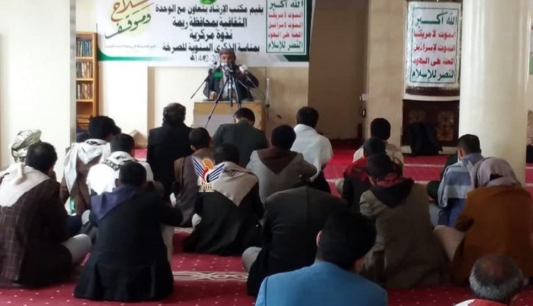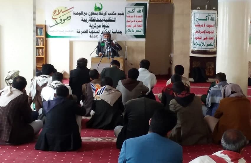 نظم مكتب الإرشاد بمحافظة ريمة بالتنسيق مع الوحدة الثقافية اليوم الأربعاء ، فعالية ثقافية بمناسبة الذكرى السنوية للصرخة في وجه المستكبرين.