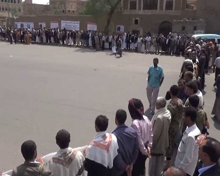 نفذت إدارة مكتب التربية والتعليم بمحافظة صنعاء مع قيادة المحافظة وكل مكاتب التربية في المديريات اليوم الثلاثاء وقفة حاشدة استنكرت فيها وبشدة جريمة الاستهداف المتعمد لمدرسة النجاح في الحيمة الخارجية، محملة الأمم المتحدة وكل المنظمات الدولية مسؤولية صمتها المخزي ومهيبين بالشعب اليمني لرفد الجبهات بكل ما يلزم.