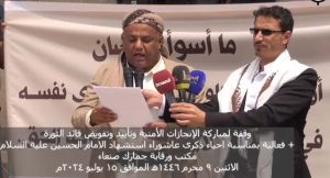 نظم مكتب جمارك ورقابة صنعاء اليوم فعالية خطابية لمباركة الانجازات الامنية وتأييد وتفويض قائد الثورة في اتخاذ الإجراءات المناسبة للدفاع عن حقوق الشعب اليمني، ومناصرة الشعب الفلسطيني, و احياء لذكرى عاشوراء واستشهاد الامام الحسين عليه السلام.