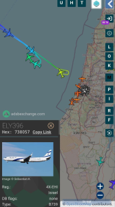 ووثقت مواقع خاصة بمتابعة الملاحة الجوية، هروب الطائرات التي كانت متجهة إلى الاراضي المحتلة بعد صاروخ أطلق من اليمن.