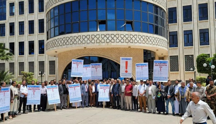 نظم موظفو شركة النفط اليمنية، اليوم، وقفة احتجاجية بصنعاء، تنديداً بأعمال القرصنة التي يمارسها تحالف العدوان بقيادة أمريكا على سفن المشتقات النفطية خاصة في ظل الهدنة المؤقتة.