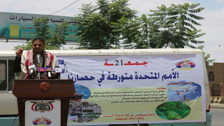وأكد الناطق الرسمي لشركة النفط اليمنية نائب المدير التجاري الأستاذ أمين الشباطي تورط الامم المتحدة في حصار الشعب اليمني بتغاضيها عن ممارسات تحالف العدوان التعسفية المستمرة بحجز السفن النفطية وعرقلة وصولها الى ميناء الحديدة.