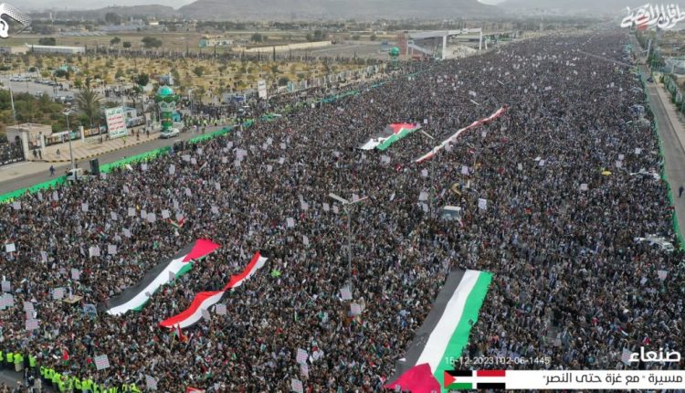 ميدان السبعين في العاصمة صنعاء يشهد طوفانا بشريا نصرة لغزة